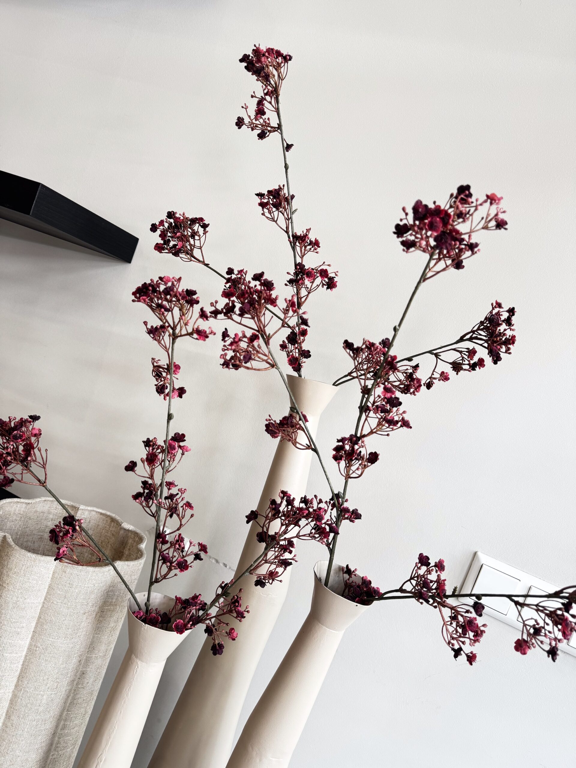 Voeg een vleugje elegantie toe aan je interieur met deze prachtige kunsttak gypso in een subtiele bordeauxrode. Deze decoratieve gipskruidtak straalt luxe en verfijning uit en past perfect bij zowel moderne als klassieke interieurs. Dankzij de diepe, warme kleur is de tak eenvoudig te combineren met andere kleuren en stijlen.