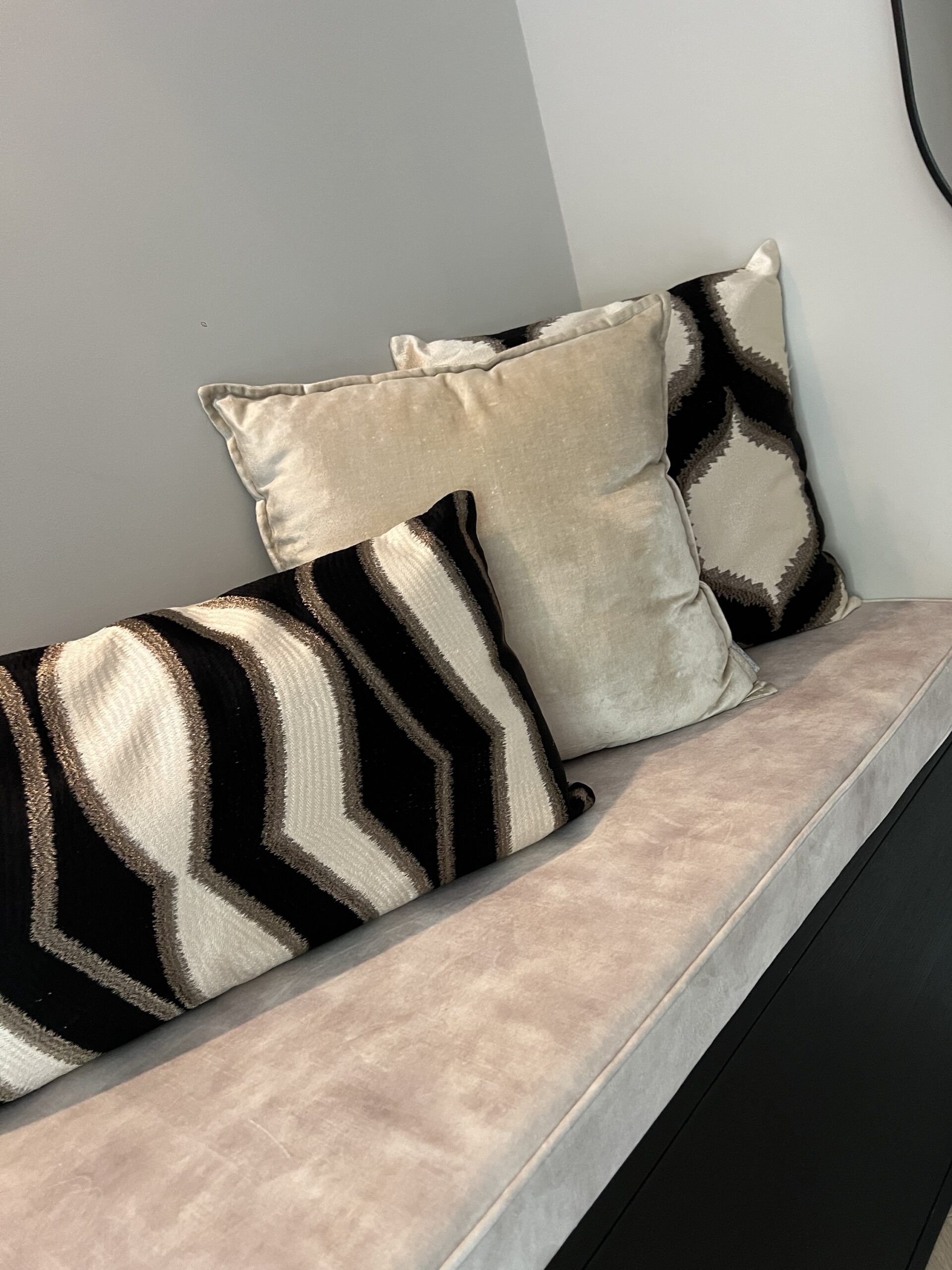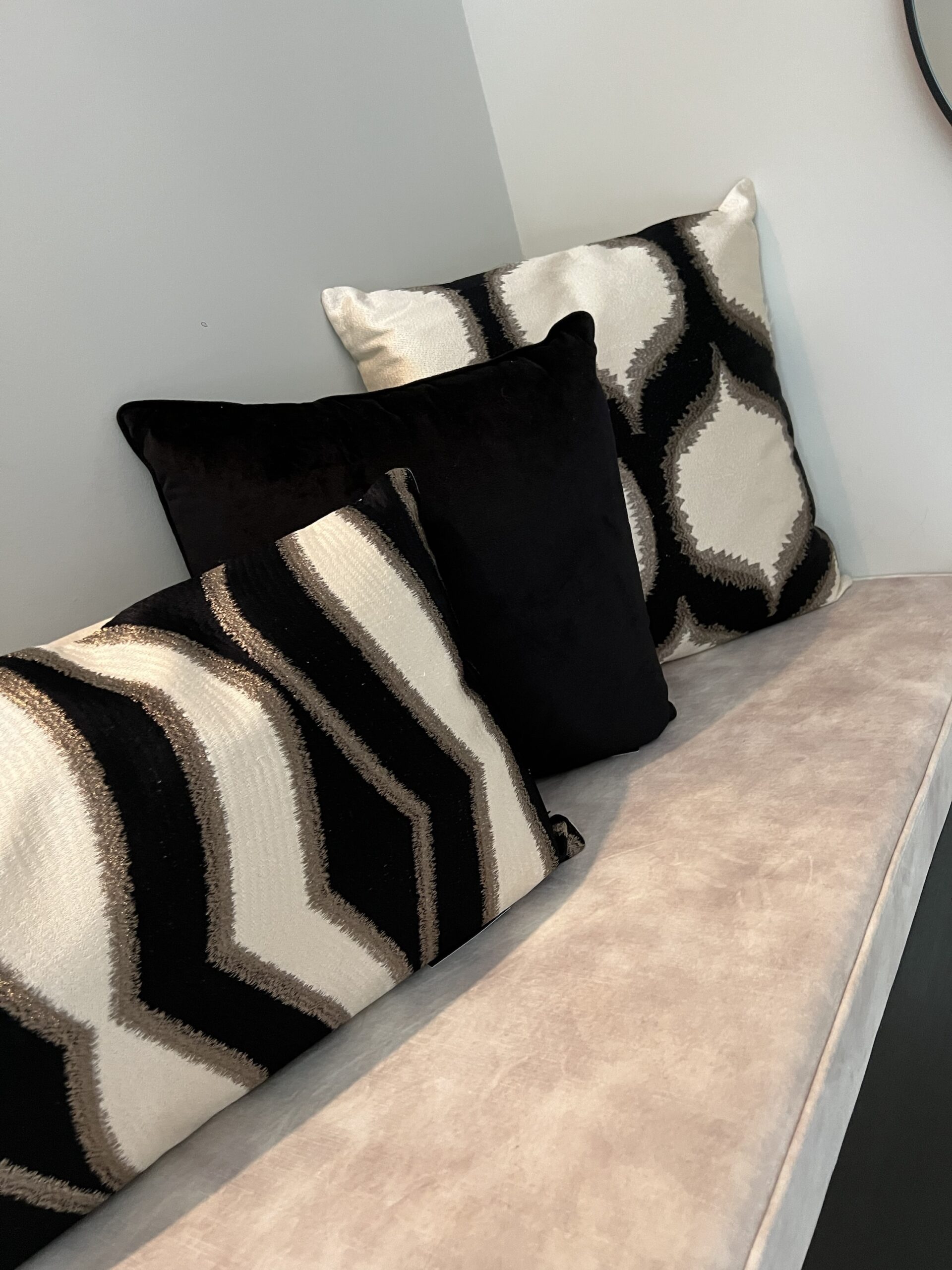 Voeg verfijning en textuur toe aan je interieur met dit elegante sierkussen. Uitgevoerd in zwart/crème/brons en voorzien van organische vormen, straalt dit kussen tijdloze klasse uit. De geweven structuur zorgt voor diepte en een luxe uitstraling, zonder opdringerig te zijn.